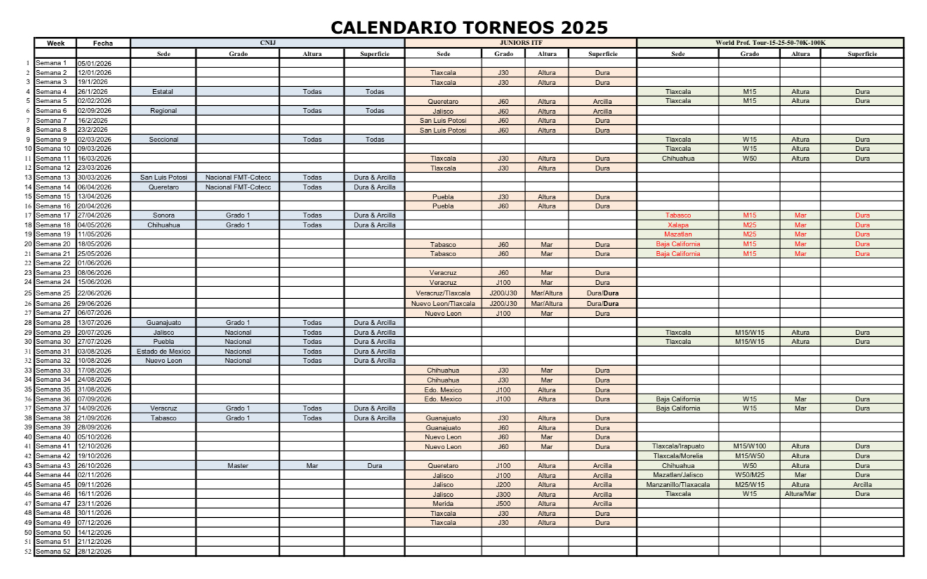 CALENDARIO TORNEOS 2026