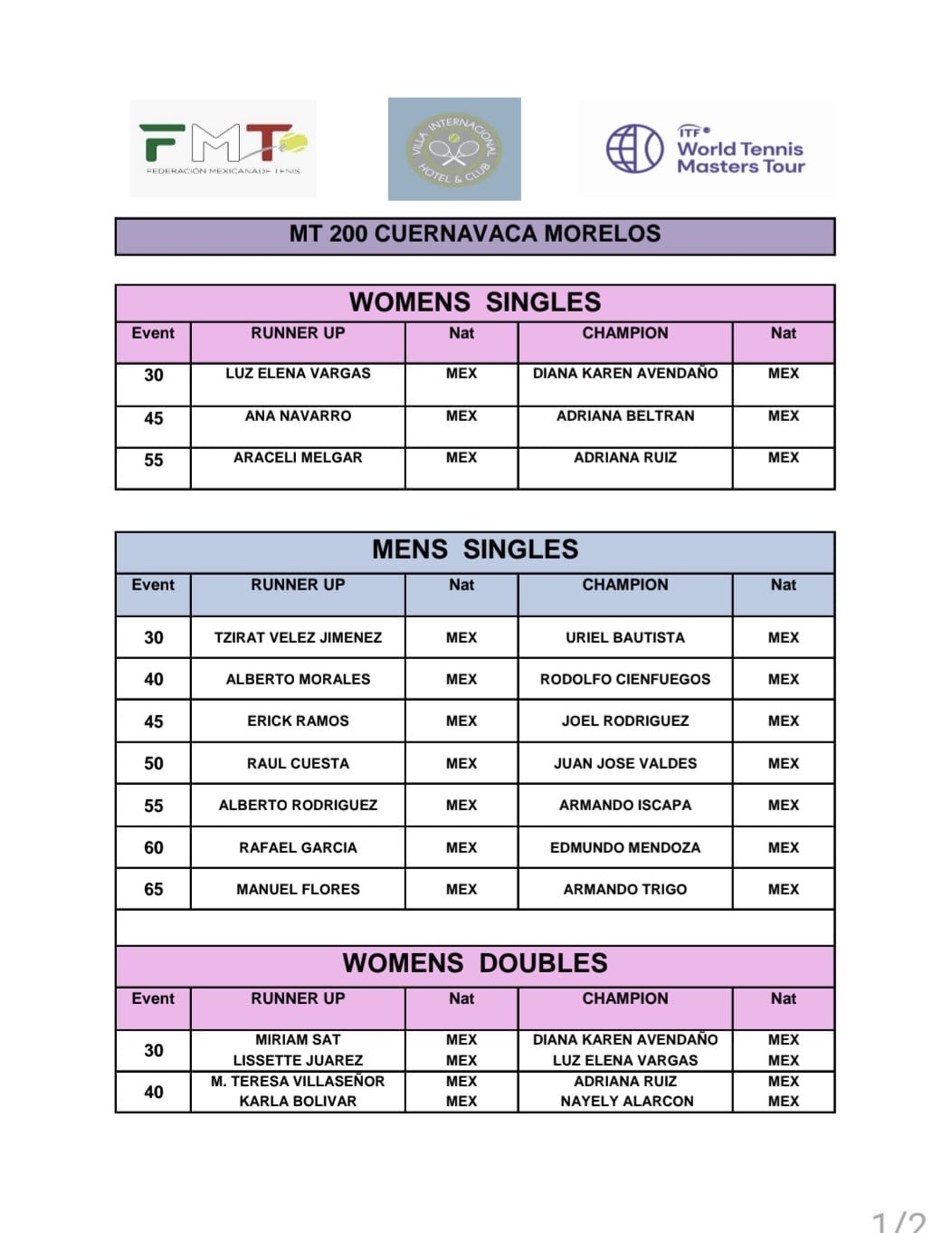 Concluyó exitosamente el torneo Grado MT200 “Copa Ricardo Vega Seniors”, que tuvo lugar en las instalaciones de la Villa Internacional de Tenis, en Cuernavaca, Morelos.