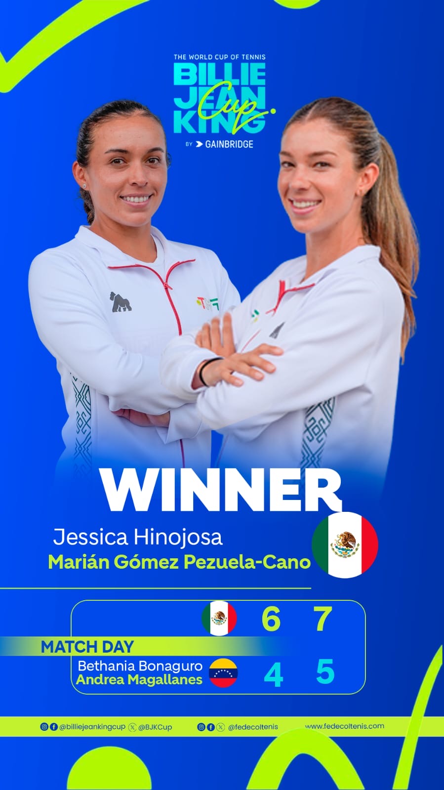 El equipo mexicano derrotó 3-0 a la escuadra de Venezuela, en el round robin del Grupo I de la Zona Americana de la Billie Jean King Cup, luego que la dupla nacional superara 6-4, 7-5 a la mancuerna venezolana.