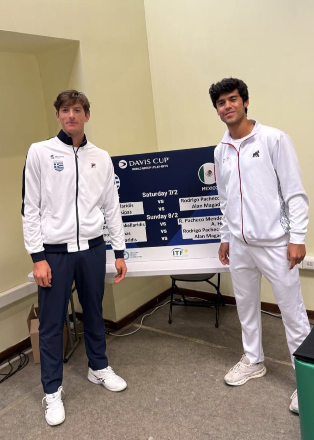 Contreras aseguró que todo está dispuesto para que el conjunto tricolor encare esta serie inédita contra sus similares griegos, en la primera Ronda del Grupo Mundial I: “el segundo punto -dijo-, lo jugará en su debut Copa Davis Alan Magadán ante Stefanos Tsitsipas, uno de Grecia”.